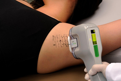 マーキングのポイントを目印にしてミラドライを直接当て、モニターを見てパワーを調整しながらマイクロ(電磁)波の照射を行います。ミラドライに搭載された独自のクーリングシステムと、局所麻酔のため、個人差はありますが痛みを感じることはほとんどありません。照射時間は片ワキ約30分、両ワキで約60分です
