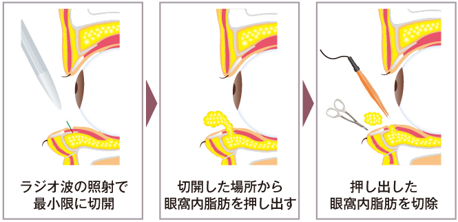 治療跡が残らないメス不要のたるみ取り「経結膜脂肪除去法」