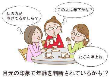 肉付きやシワ・白髪の有無・・・様々な細かい情報をかき集めて人は瞬時に判断していると言います。中でも大きな情報元となるのが目元なのだそう。確かに美容の世界で最もニーズが多い部位は目元。メイクや二重術で目を大きく見せたり、医療やスキンケアでシワを改善するなどは一般的になっていますが、