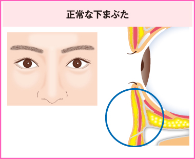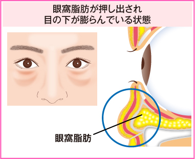下まぶたの皮膚はとても薄く、簡単に突出してしまうため、たるみが生じます。また生まれつき眼窩脂肪が多い方もいます。